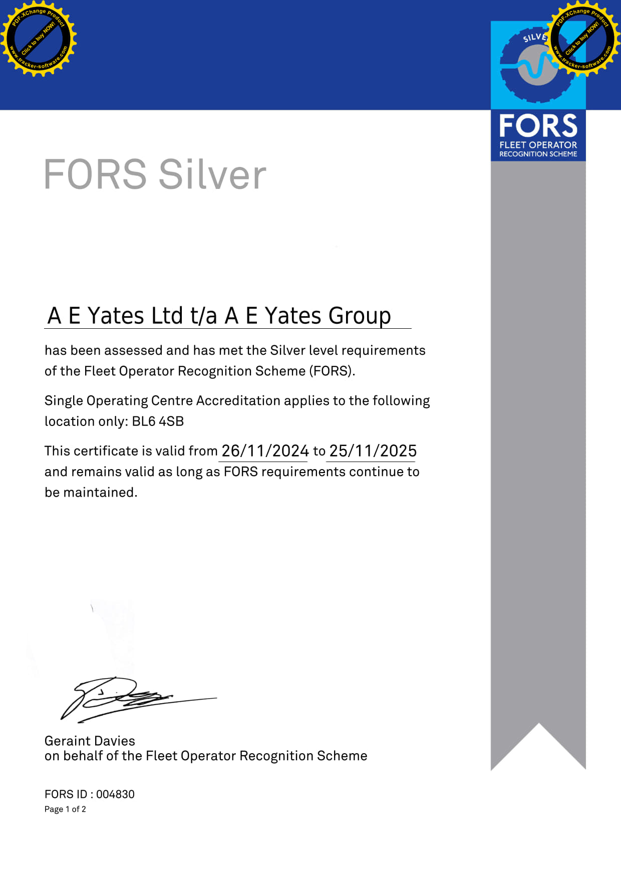 Cert No. OHS 549561