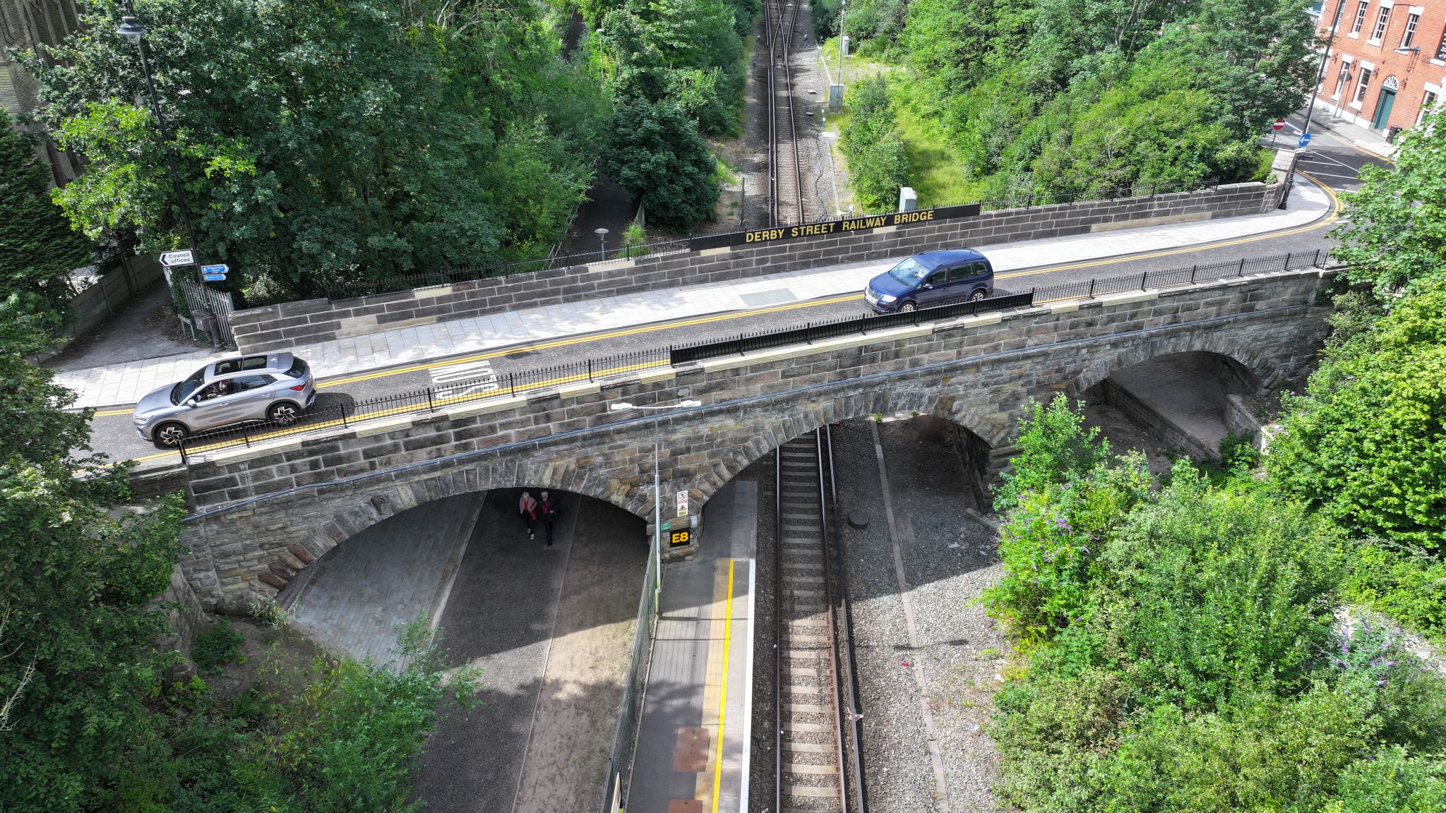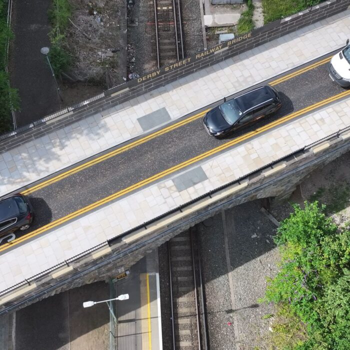 The scheme consisted of vital safety improvements to Derby Street Bridge in Ormskirk town centre, which carries the A570 over the railway line linking Preston and Liverpool. Derby Street Railway Bridge was built in 1848 and was not designed to support modern traffic. The works which included stitching the arch rings with the installation of stainless-steel dowels and grouting any voids within the arch barrel, were needed to make it safer and strengthen the bridge. Additionally, other works on the structure included rebuilding and raising the masonry parapets to a height of 1.8m with the introduction of a heritage-style railing. Due to two of the structures being over 3rd party assets, close coordination and communication with the Environment Agency and Canal & River Trust were necessary throughout the project.