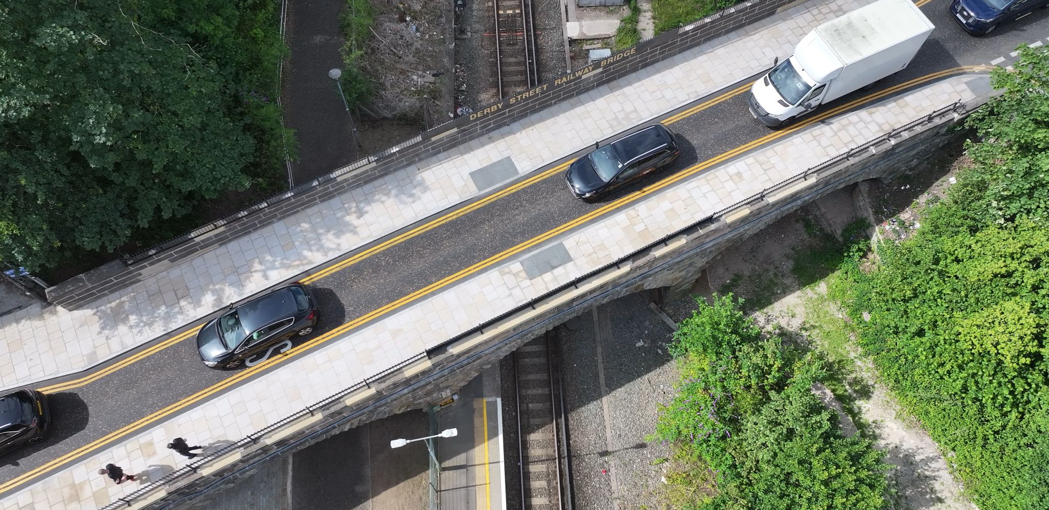 The existing footpaths on the bridge were too narrow for pedestrians to use safely, and the narrow traffic lanes increased the risk of collisions. This posed a potential threat to the bridge itself and could affect the safety of the railway running underneath. To address these safety concerns, the layout of the bridge was altered to convert the current two lanes of traffic into a single lane. This change allowed for the widening of the footpaths. The project included improvements such as curbing, paving, surfacing, and the installation of new signage throughout the area.