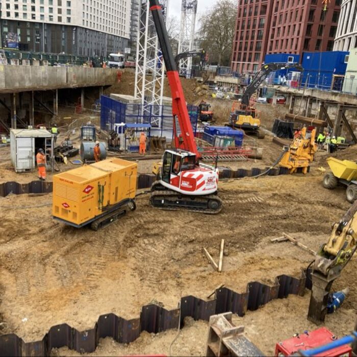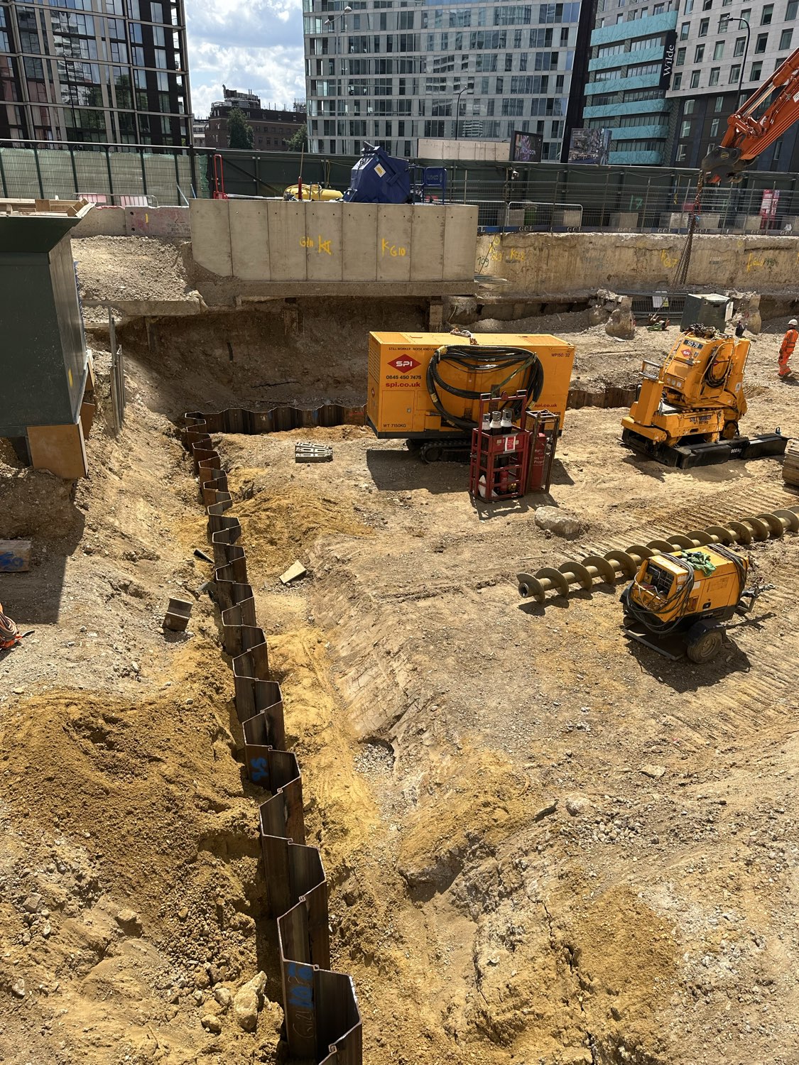SPI Piling Ltd, completed both phases safely, on programme and without incidents. The silent press-in method reduced environmental impact and protected neighbouring assets. The project highlighted SPI’s expertise in urban, vibration‑sensitive piling, strong temporary works coordination and effective integration with principal contractors