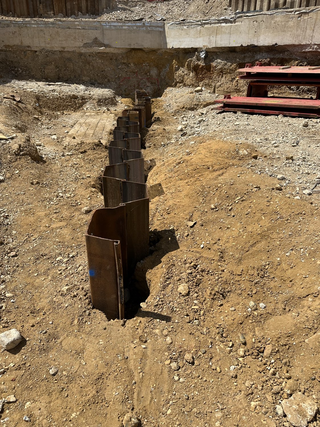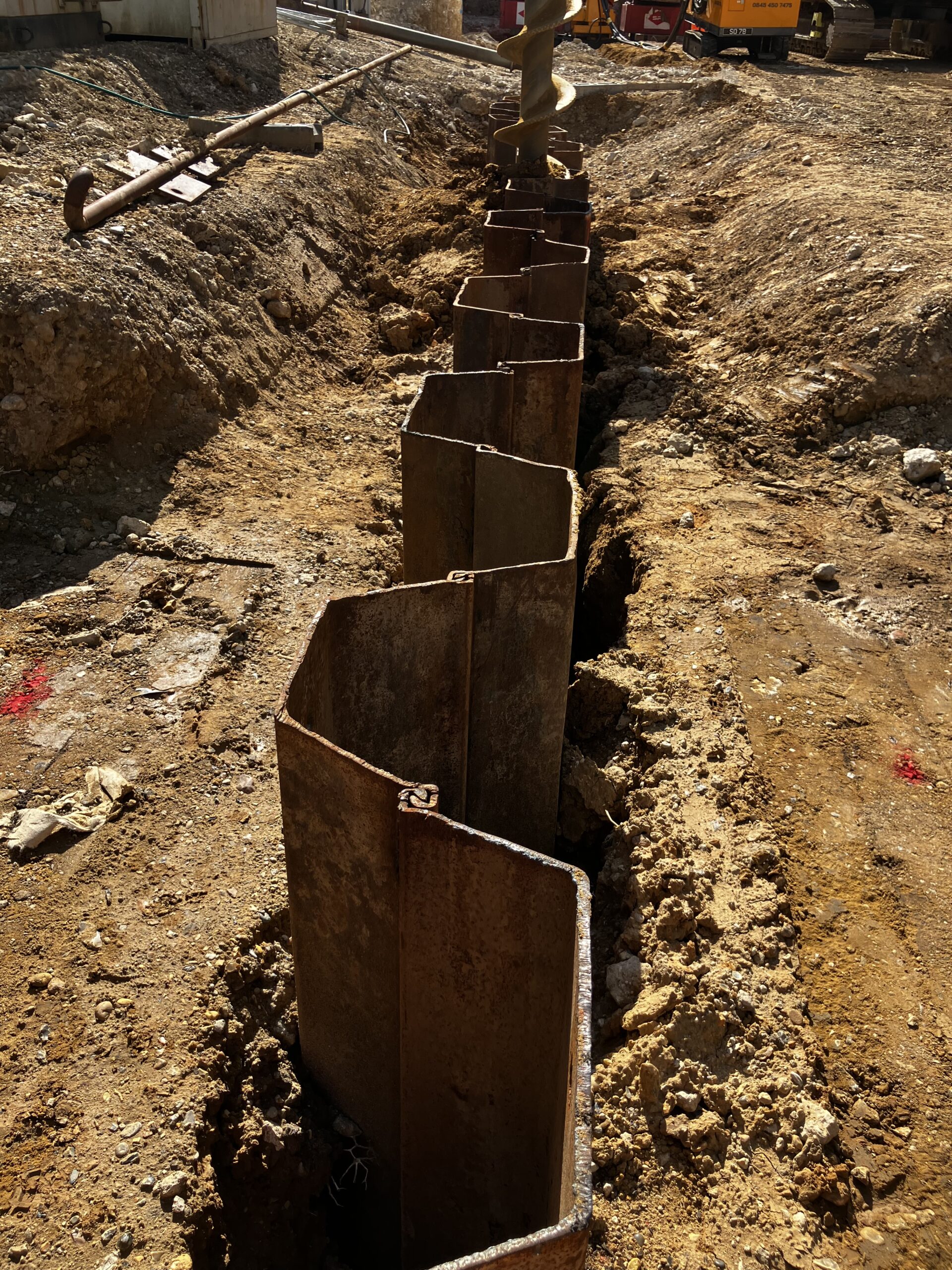 SPI Piling Ltd's scope included the design, supply and installation of GU21N sheet piles across two work zones (Block I and Block K). Pile lengths ranged from 7–10.5m in Block I and 8–9.5m in Block K, with programme durations of 2 weeks and 2.5 weeks respectively. Works involved pre‑augering, water jetting, welding, pile cutting and coordination of temporary works.