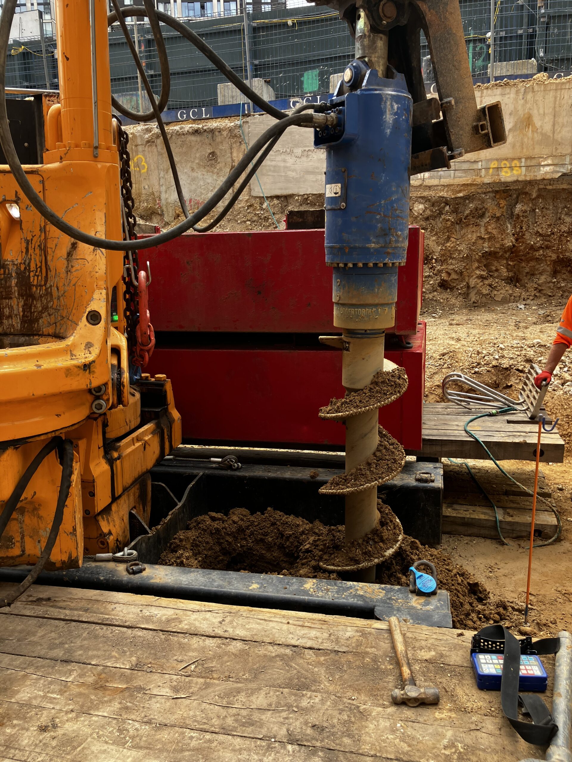 To minimise noise and vibration, SPI Piling Ltd, deployed a WP150 hydraulic silent press-in rig, installing piles in controlled 900mm cycles. Pre‑augering reduced resistance, and a reaction stand with kentledge supported the initial press-in sequence. Real‑time monitoring ensured verticality and compliance with design requirements. All lifting operations were performed under approved Lift Plans.