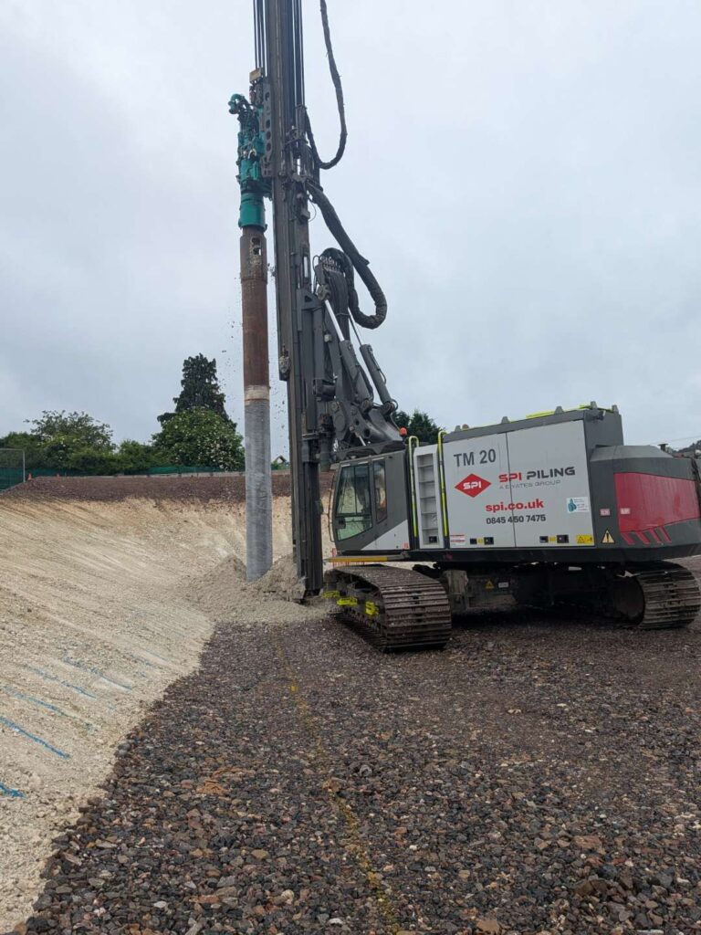 All piles were supplied from SPI Piling Ltd, stocks, and installed using Gilbert Grizzly MultiGrip attached to 35te excavator working in restricted head room of 8m.